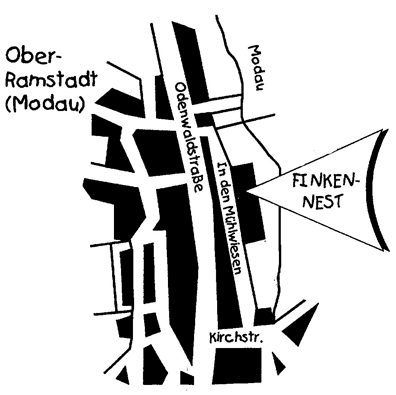 In Nieder-Modau, von der Hauptstrasse (Odenwaldstrasse) links in die Kirchstrasse und dann gleich wieder links in die Mühlwiesenstrasse abbiegen. Haus rechts am Wendehammer.